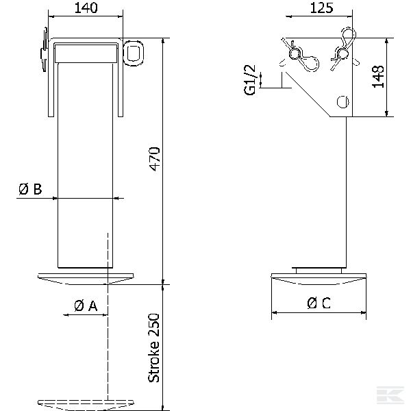 Hidrauliskā atbalsta kāja, 85-250mm, 8500kg