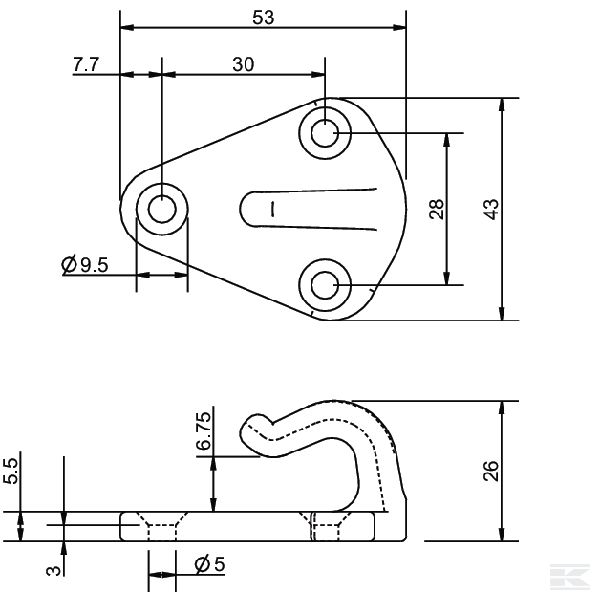 Kravas pārsega nostiprināšanas āķis, 43x73 mm