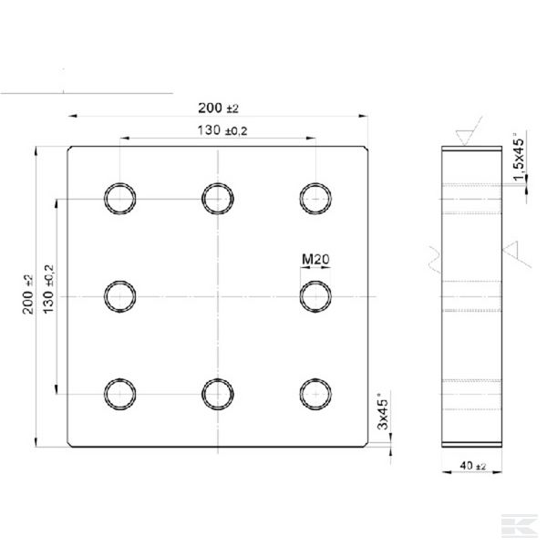 Scharmuller metināmā plāksne, 130x130, ØM20