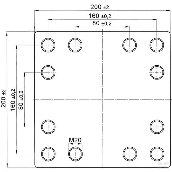 Scharmuller metināmā plāksne, 160x160, ØM20