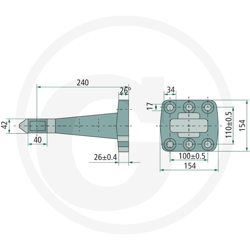 Sakabes cilpa 40 mm, flancis 110 x 100 mm, 24 t