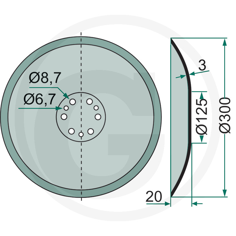 Sējdisks 300 x 3 mm, 9 caurumi