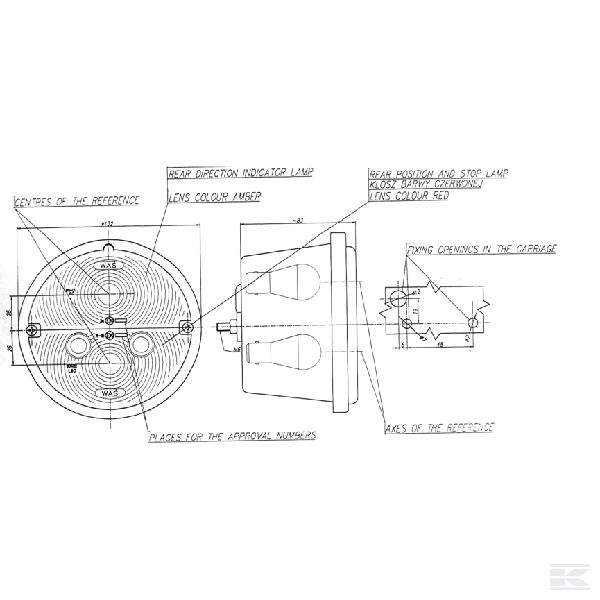 Aizmugurējais lukturis, 73, W-16, labais, 12-24 V