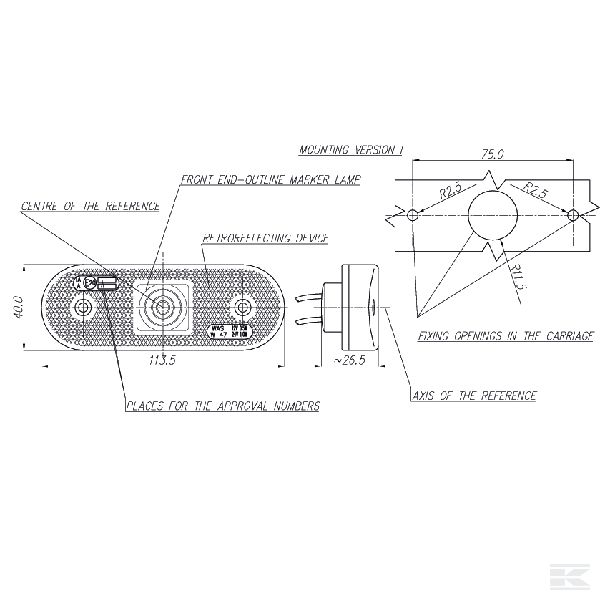 LED Gabarītlukturis, sānu, 231, W-47, 12-24 V