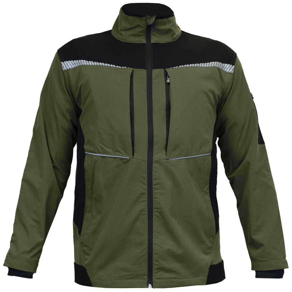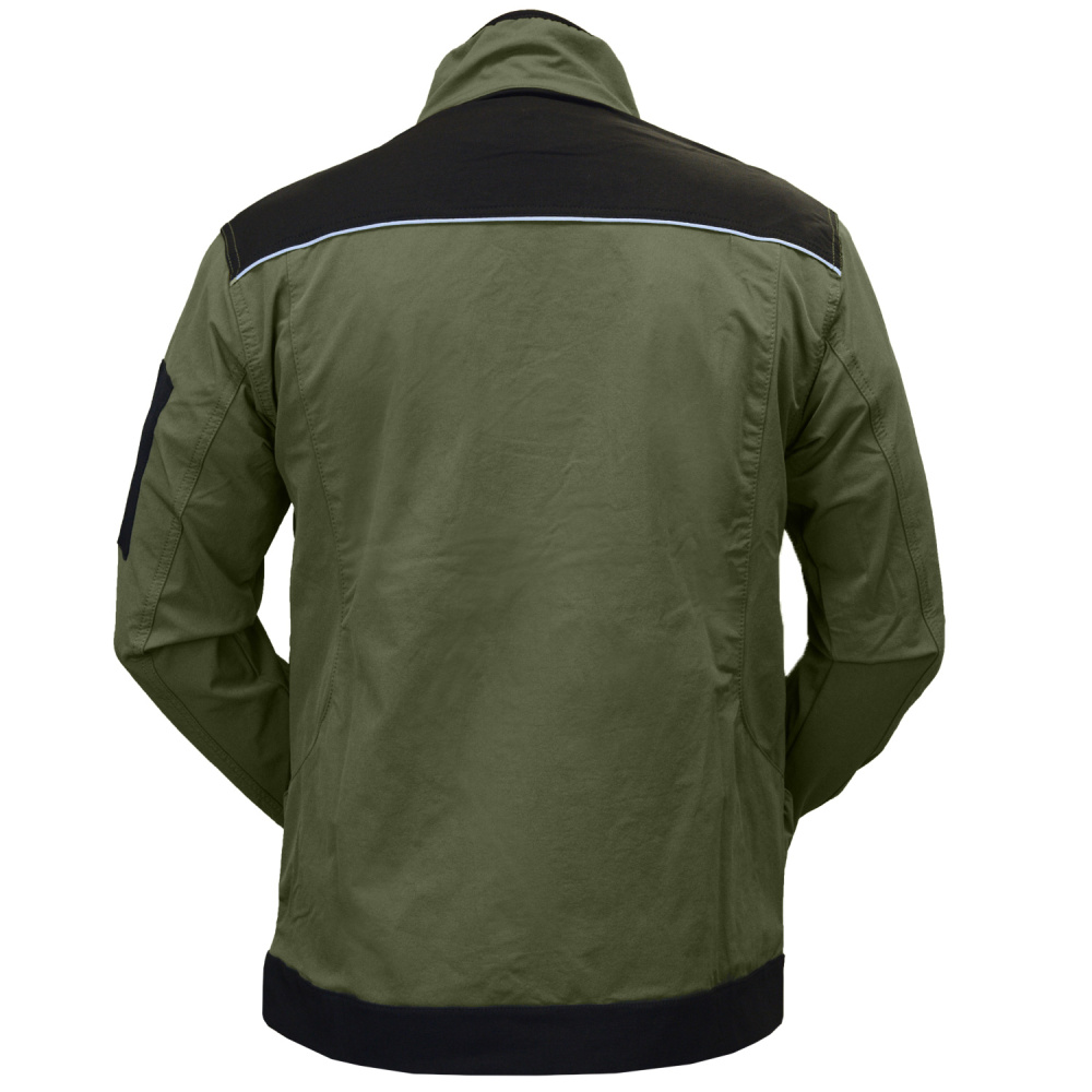 Mūsdienīga darba jaka Ultra Stretch haki krāsā, izgatavota no augsti elastīga 4 virzienu stiepuma auduma, nodrošina vieglu un ērtu valkājumu. Audums stiepjas un pielāgojas ķermeņa formai, piemērots darbam vai pietupieniem, saglabājot kustību brīvību un komfortu.