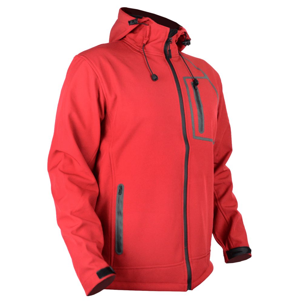 Softshell jaka, piemērota pavasara, vasaras un rudens sezonām, nodrošina komfortu un aizsardzību dažādos laikapstākļos. Mūsdienīgs dizains sarkanā krāsā.