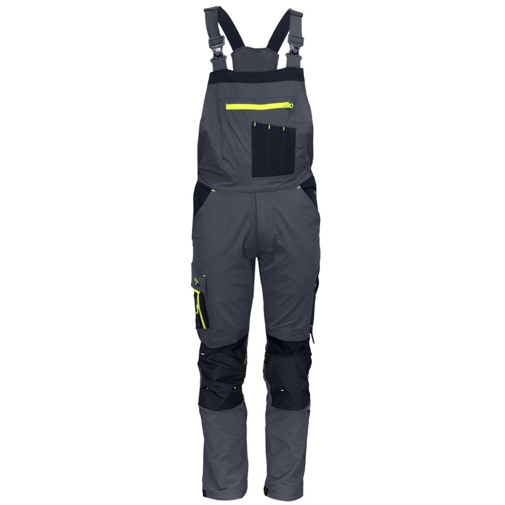 Darba kombinezons AirFlex izgatavots no augsti elastīga 4 virzienu stiepuma materiāla, kas nodrošina izcilu kustību brīvību un komfortu darba laikā. Moderns dizains ar pelēku pamattoni un spilgti zaļiem akcentiem. Piemērots valkāšanai kopā ar atbilstošo AirFlex jaku vai softshell jaku.