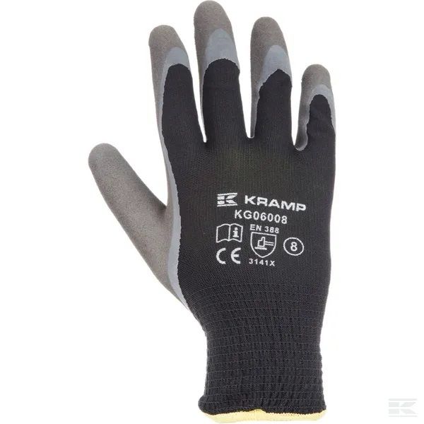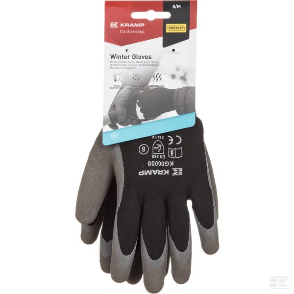 Kramp Protect aukstumizturīgajiem darba cimdiem ir ērts lateksa pārklājums, kas aizsargā rokas no mitruma un aukstuma.