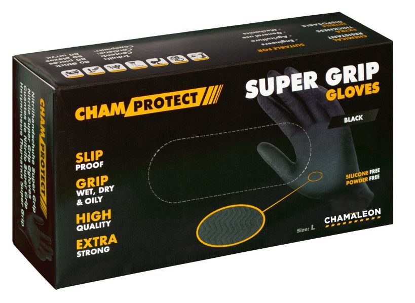 CHAMALEON Super Grip nitrila cimdi, melni (80 gab.)