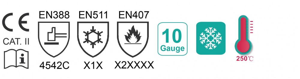 Darbos aukstos apstākļos ar/bez griešanas briesmām sausos vai slapjos vai eļļainos apstākļos. Piemēram, āra darbi, saldētava, apkope, asu vai raupju detaļu apstrāde, mašīnu darbība, loģistika, noliktavas darbi utt.