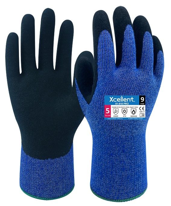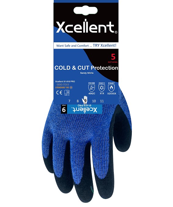 Super aukstumizturība un 5. līmeņa aizsardzība pret griezumiem. Papildu elastība, mīkstums un komforts. 10 gabarīts, smilšains nitrils.
