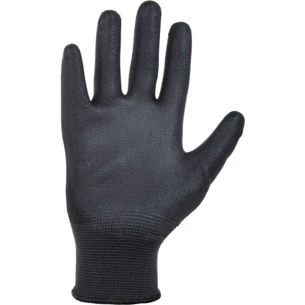 Darba cimdi KRAMP 1.001 ar PU pārklājumu, melni (iepakojums)