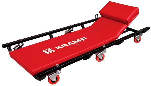 Ērti pārvietojami darbnīcas ratiņi ar sešiem gludi ripojošiem riteņiem un regulējamu galvas atbalstu, kas nodrošina vieglu manevrēšanu darbnīcā.