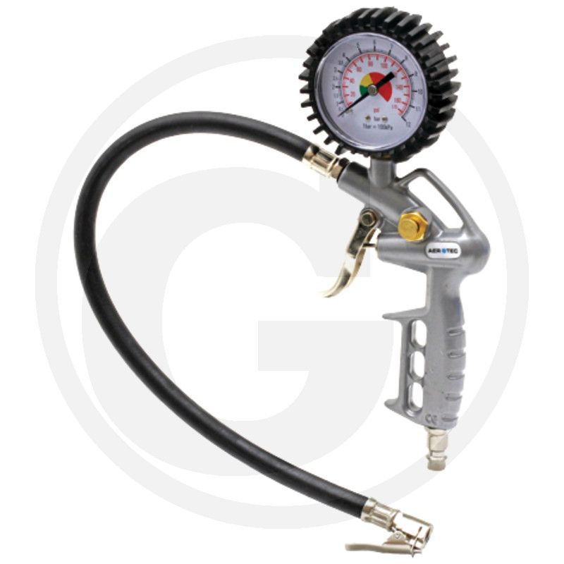 For the inflation, deflation and monitoring of tyres. Complete with pressure gauge and filling connector.