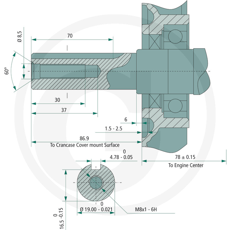 Kloķvārpstas Ø (mm): 19