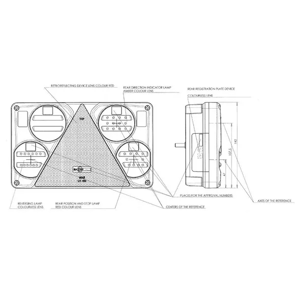 Universāls aizmugurējaiz lukturis, kurš piemērots piekabēm, smagajām mašīnām un celtniecības transportlīdzekļiem.
