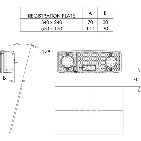 Funkcijas: atpakaļgaitas lukturis, virziena rādītājs, pozīcijas gaisma, bremžu gaisma, numura zīmes apgaismojums