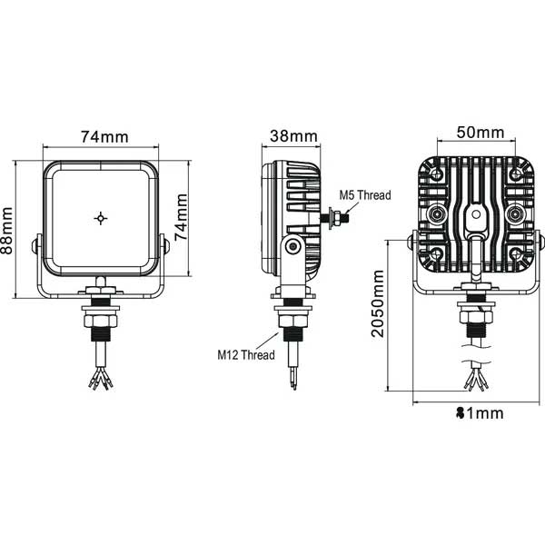 Horizontālā bākuguns LED, 6W, kvadrāts