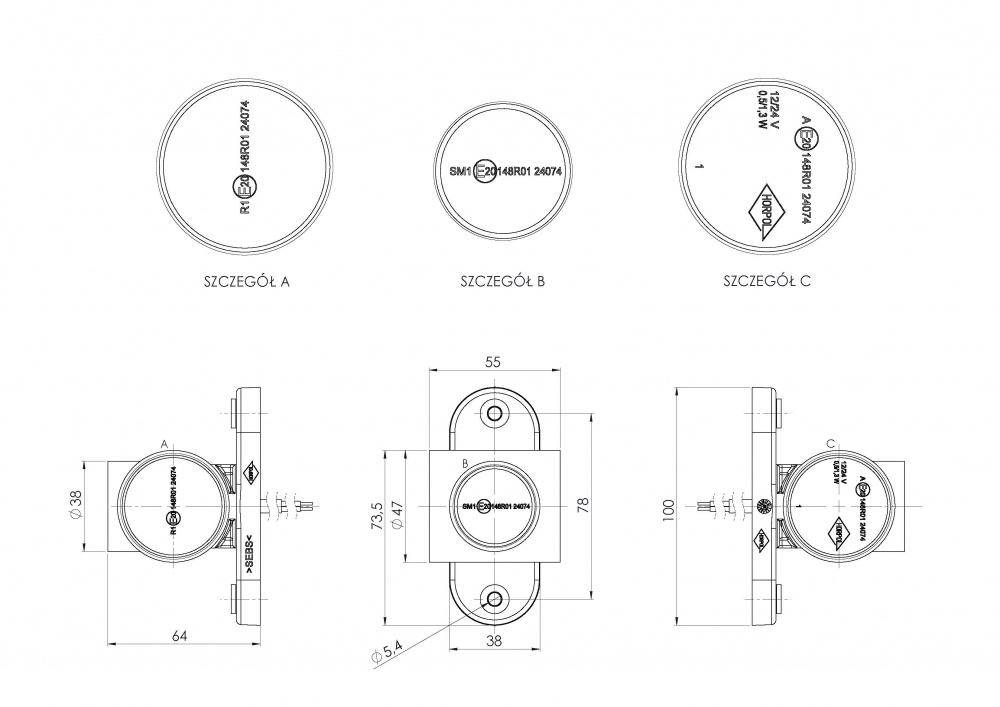 LD 2186/GRAPHITE ir trīskārts sānu marķējuma lukturis uz diagonāla, gara stiprinājuma, paredzēts uzstādīšanai transportlīdzekļa labajā un kreisajā pusē.