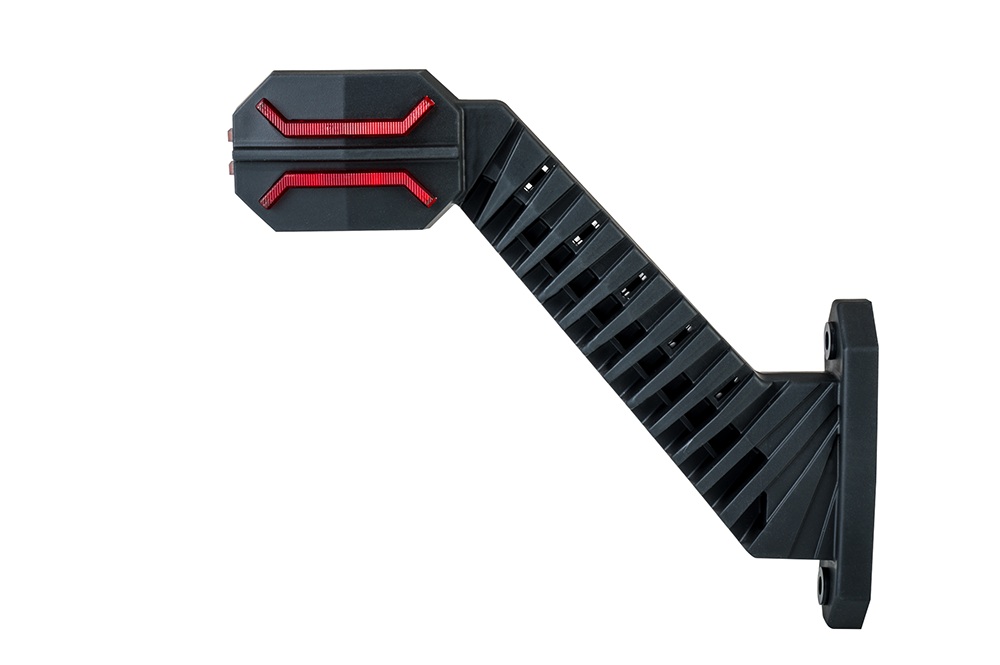 Trīsfunkcionāls marķējuma lukturis uz gara diagonāla stiprinājuma, paredzēts uzstādīšanai transportlīdzekļa kreisajā pusē.