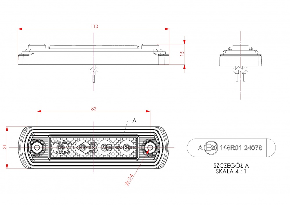Gabarītlukturis GRAPHITE , balts, 4 diodes