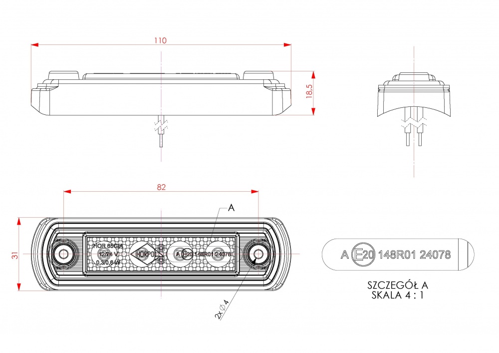 Gabarītlukturis GRAPHITE , sarkans, 4 diodes
