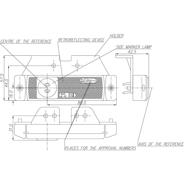 Universāls gabarītlukturis, kurš piemērots celtniecības transportlīdzekļiem, piekabēm un smagajām mašīnām.