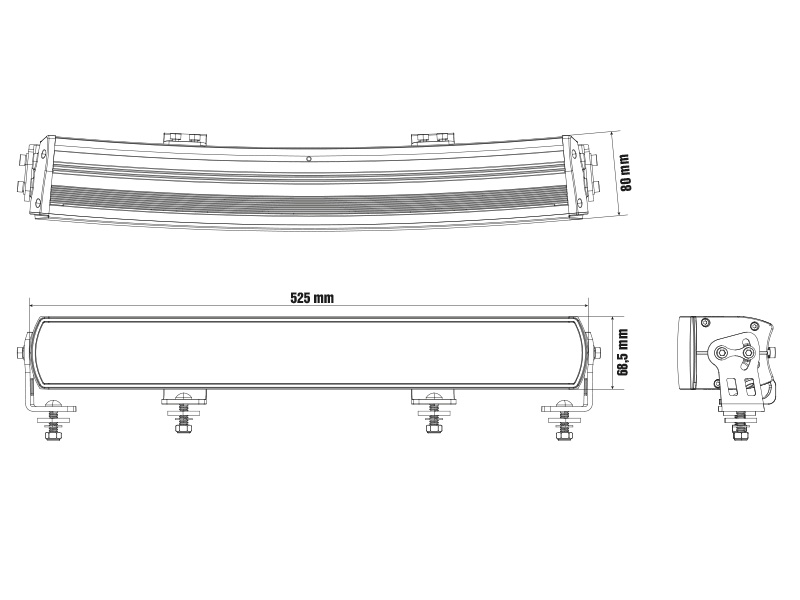 • Izmēri: 525 × 68.5 × 80 mm