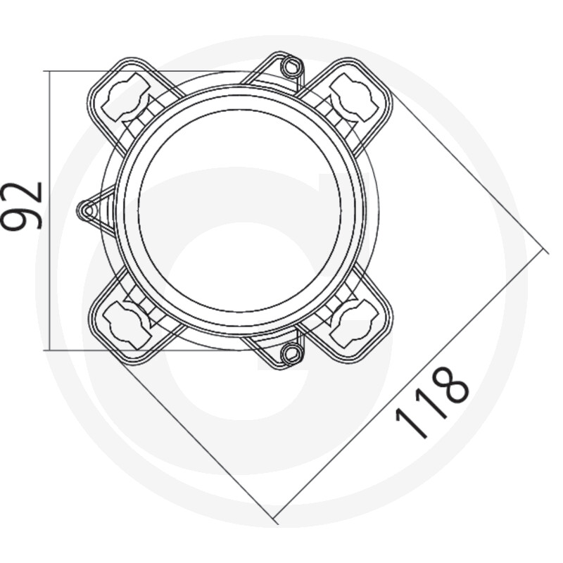 • Izmēri: Platums x Augstums x Diametrs (mm): 118 x 118 x 109