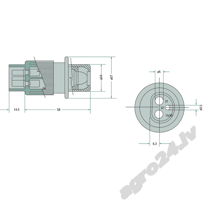 12/24 V, 2x 25 ampēri, 1x 5 ampēri.