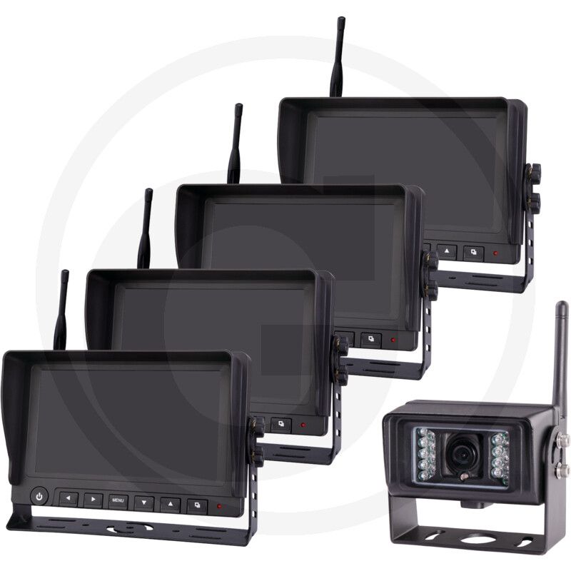 Daudzu monitoru kameru sistēma ļauj bezvadu kamerai reāllaikā ērti uzraudzīt darba zonas. Šo bezvadu kameru un līdz pat četriem bezvadu monitoriem var izmantot, lai uzraudzītu vienu darba zonu.