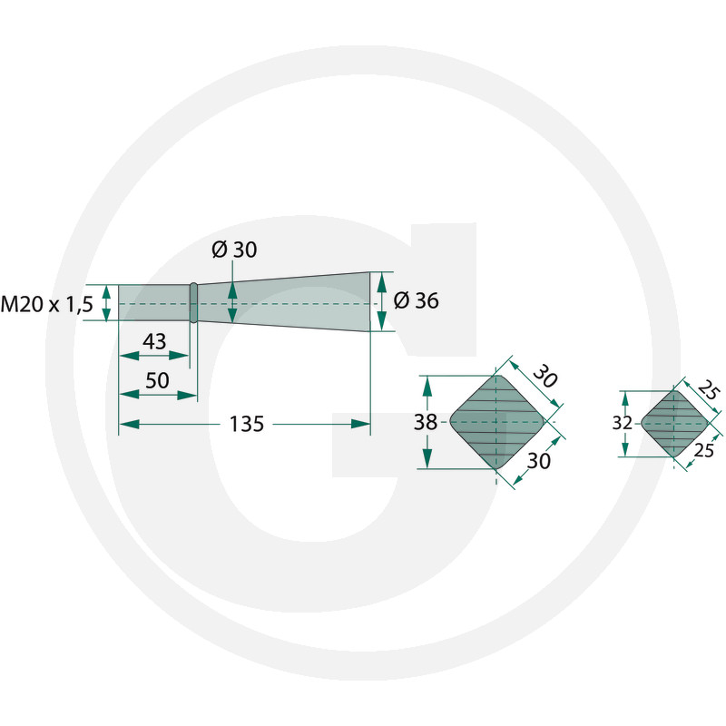 BLUELINE Ieliekts pīķis, M20 x 1,5 mm, kvadrātsveida, konuss K004