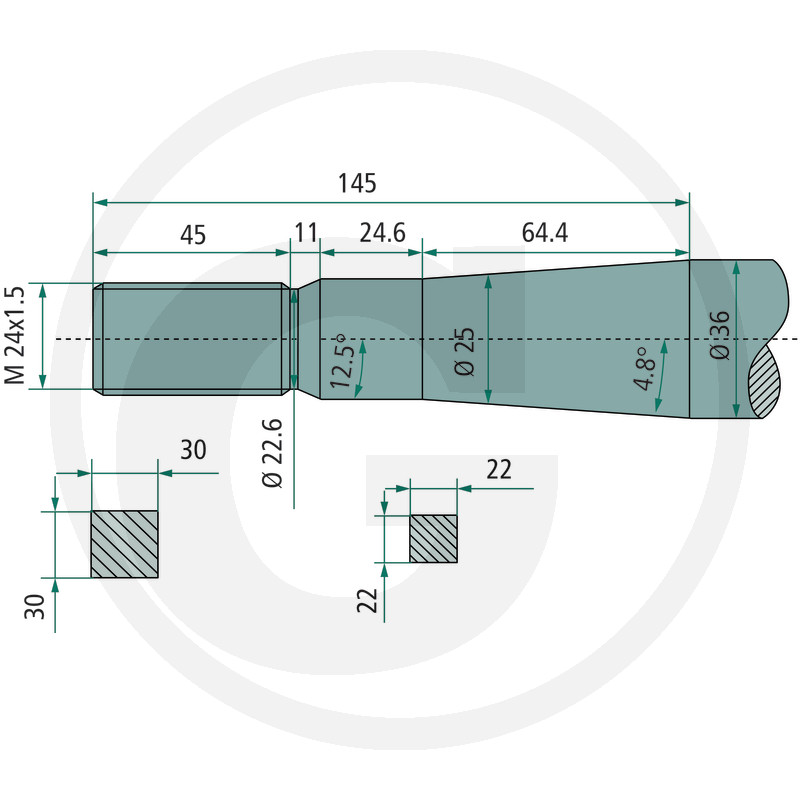 Izliekts pīķis, M24 x 2 mm, kvadrātveida, konuss K111