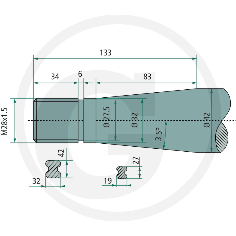 Pīķis, M28 x 1,5 mm, kvadrātveida, konuss K155