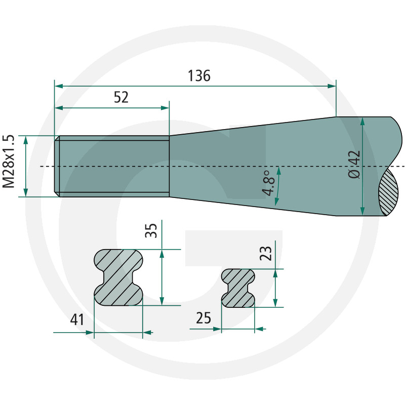 Pīķis, M28 x 1,5 mm, kvadrātveida, konuss K139