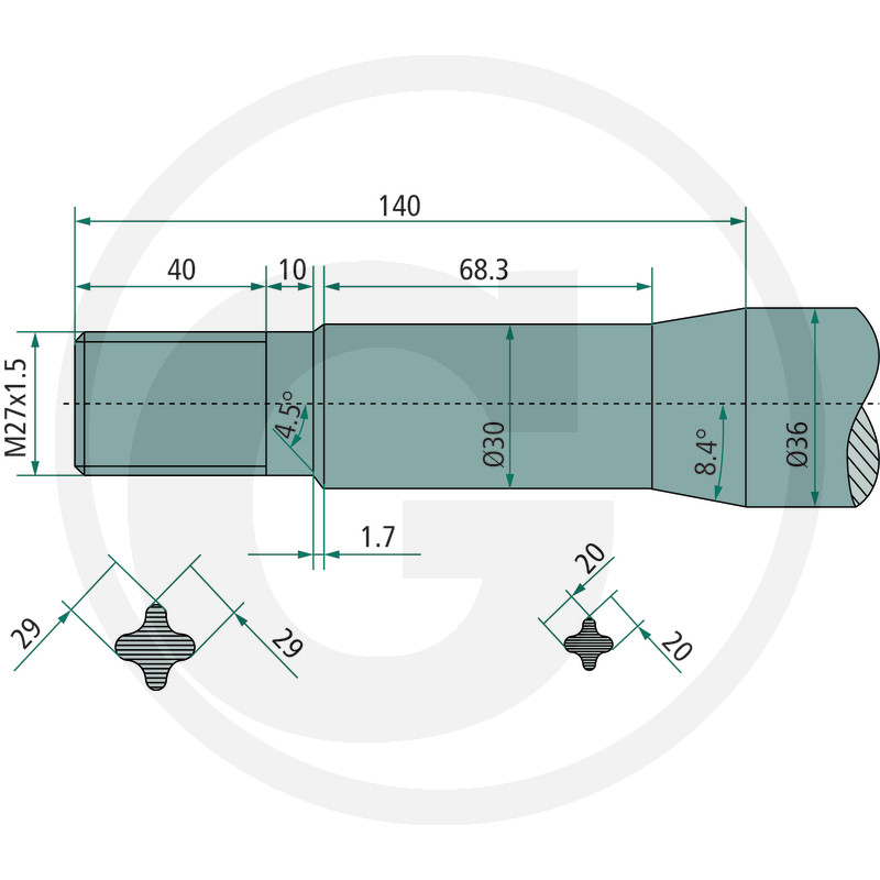 Izliekts pīķis M27 x 1,5 mm, zvaigzne, konuss K135