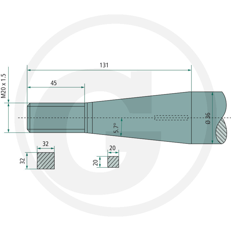 Pīķis, M20 x 1,5 mm, kvadrātveida, konuss K004