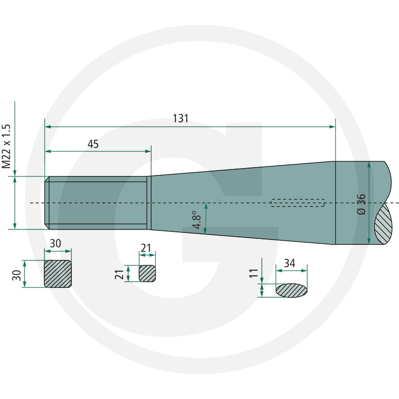 Pīķis, M22 x 1,5 mm, kvadrātveida, konuss K001