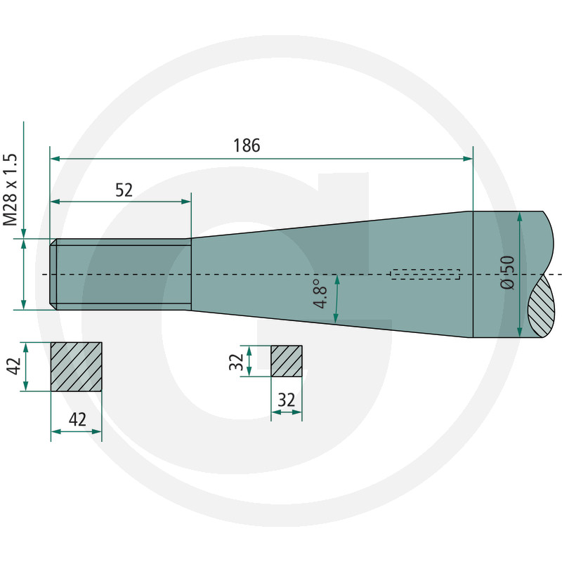 Pīķis, M28 x 1,5 mm, kvadrātveida, konuss K014