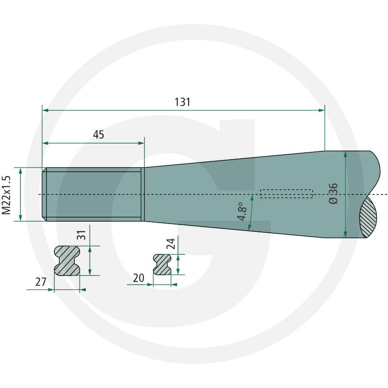 Pīķis, M22 x 1,5 mm, kvadrātveida, konuss K001