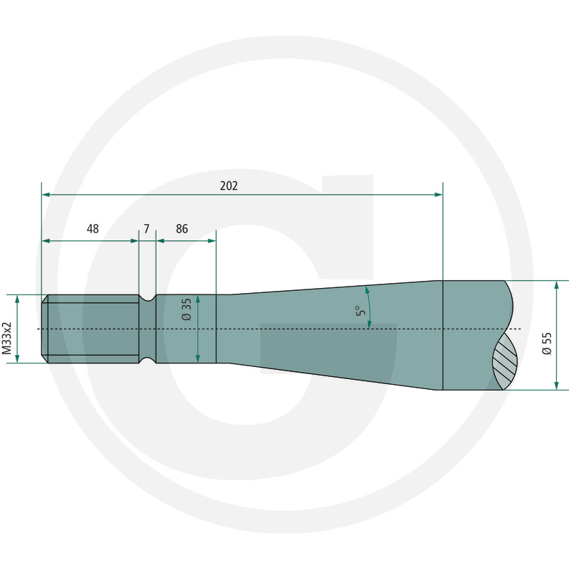 Pīķis, M33 x 2 mm, apaļš, konuss K018