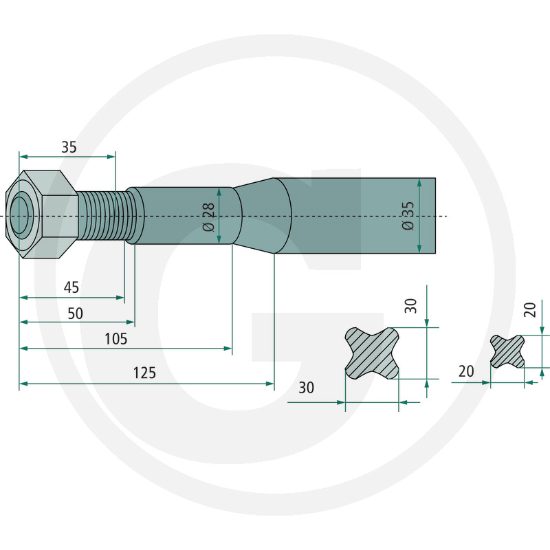 Pīķis, M22 x 1,5 mm, kvadrātveida