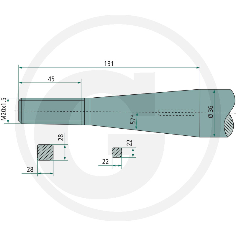 Pīķis, M20 x 1,5 mm, kvadrātsveida, konuss K004