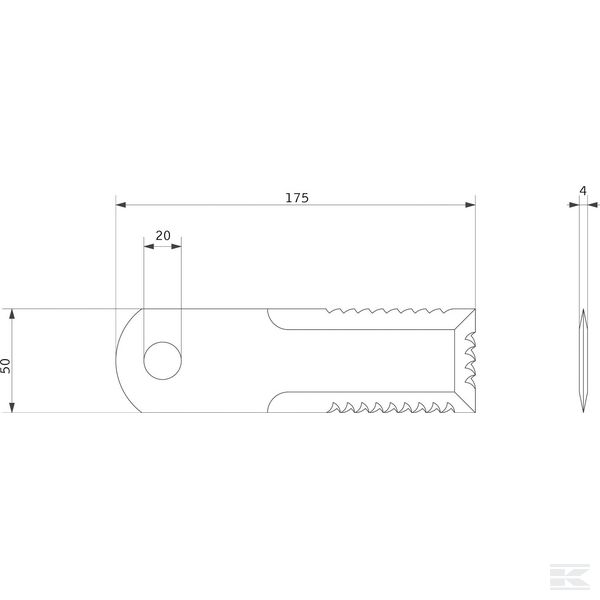 Smalcinātāja nazis, rievots, 175x50x4,5, Ø20 mm