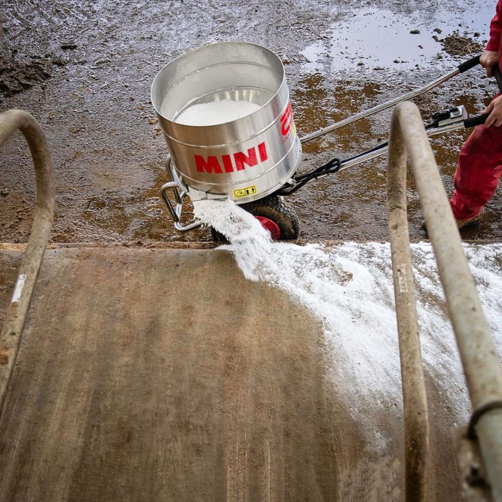 Ar akumulatoru darbināms kliedētājs uz riteņiem kaļķa un citu dezinfekcijas materiālu izkaisīšanai. AG MINI darbina elektromotors ar atkārtoti uzlādējamu akumulatoru, kas nodrošina nepārtrauktu lietošanu divas stundas.
