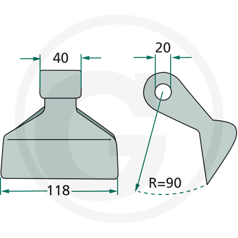 Mulčera āmurīts Ø 20.5, 118 mm, R=90