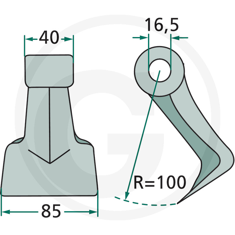Mulčera āmurīts Ø 16.5, 100 mm, R=100
