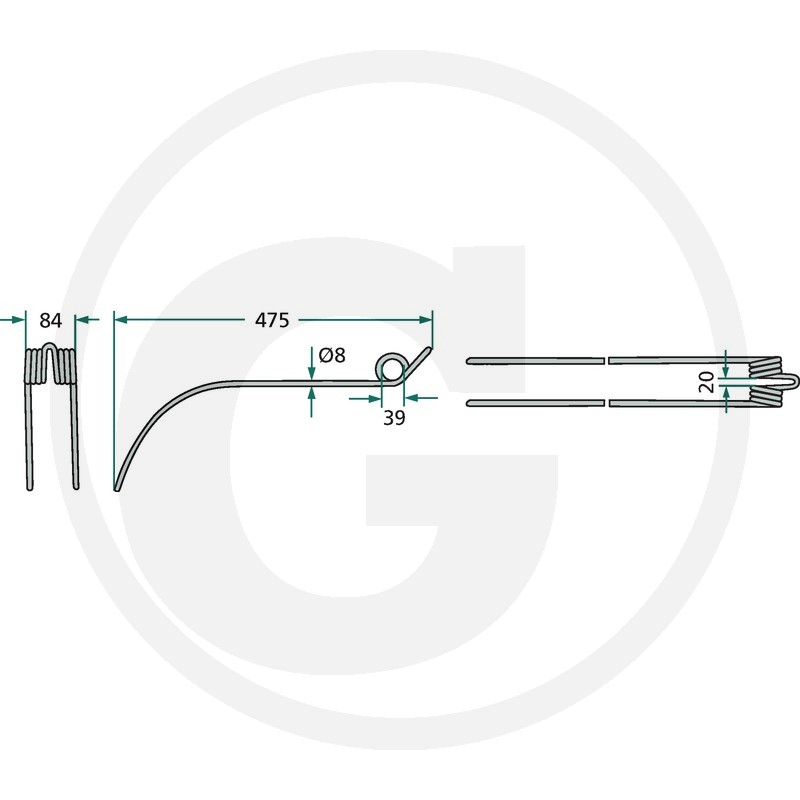 Rotējošā grābekļa zars, 475x84 Ø8 mm