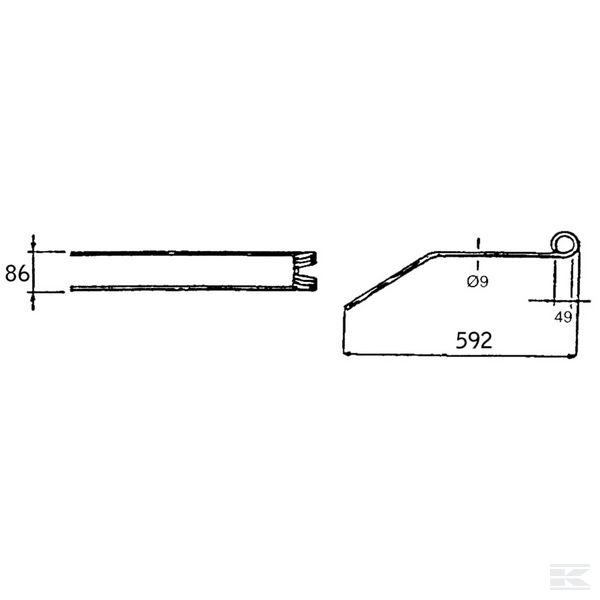 Rotējošā grābekļa zars, 592x88 Ø9 mm