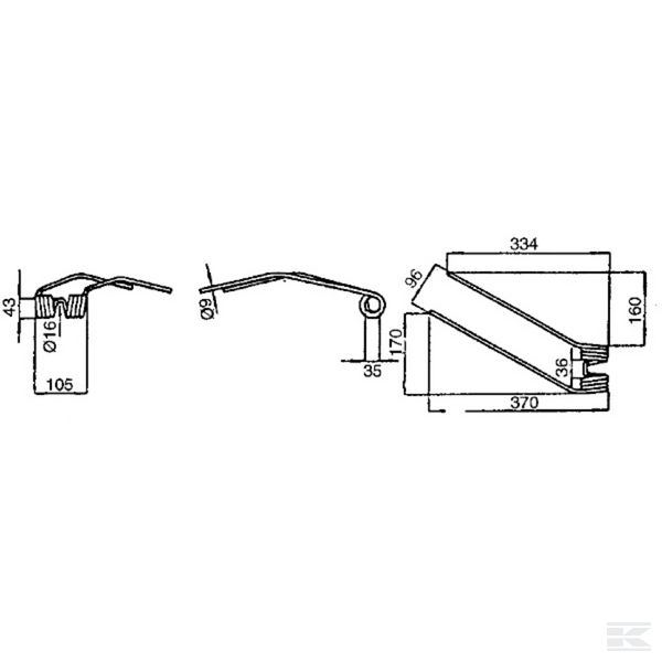 Rotējošā grābekļa zars, 370x105 Ø9 mm